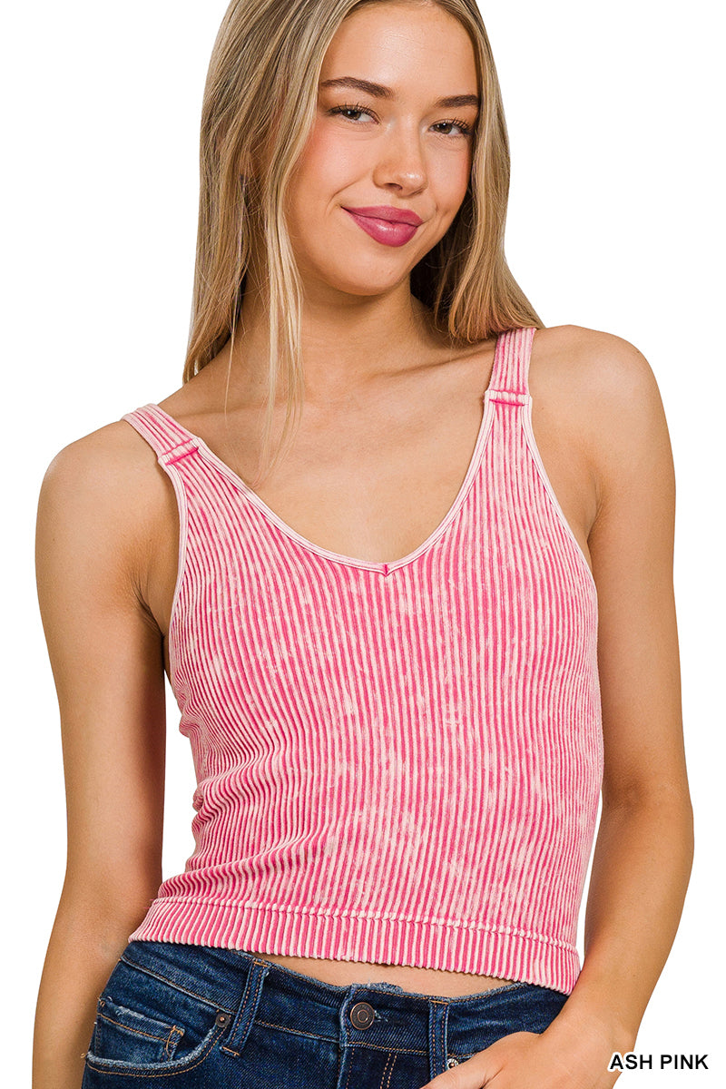 Washed ribbed seamless bra padded v-neck tank top